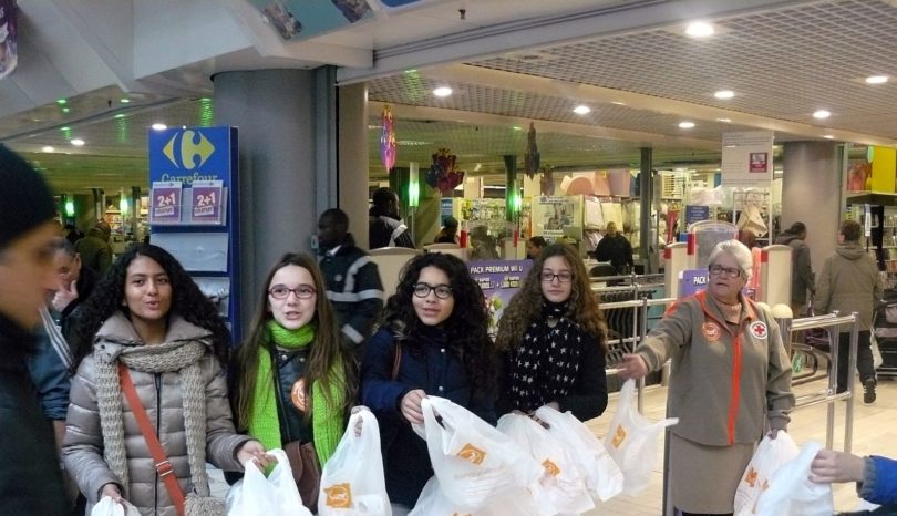 Mobilisation des élèves de 5ème du collège Saint Vincent de Paul pour la deuxième année consécutive pour la collecte de la Banque Alimentaire en partenariat avec la Croix Rouge.
