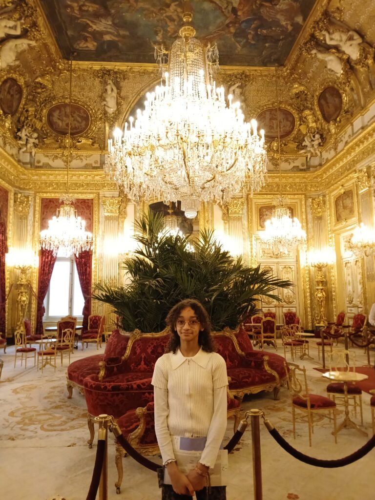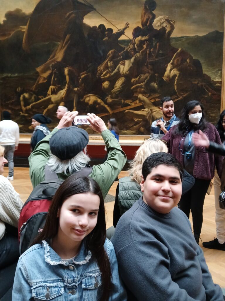 Les élèves ont ensuite pénétré dans les somptueux appartements de Napoléon III, véritable éblouissement de lustres, de dorures et de plafonds peints. Du côté de la peinture française, ils se sont retrouvés face à des toiles monumentales comme Le Sacre de Napoléon de David ou le saisissant Radeau de la Méduse de Géricault.